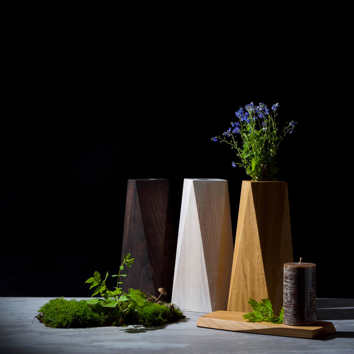 Design a zároveň i malovýroba interiérových doplňků – vázy, tácy, věšáky a police z dubového dřeva a oceli. Celkový proces od designového návrhu až po samotné vyhotovení prototypů a následný prodej.